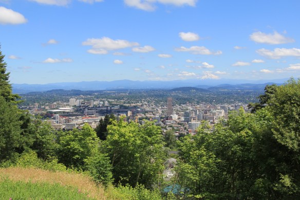 Speaking of beautiful, I’ll leave you with a couple of pictures that Jeff took during a stroll we took around the lawn of Pittock Mansion the weekend before last. One is the quintessential picture overlooking Portland with Mount Hood far in the distance (it’s almost hard to tell it apart from the puffy clouds); the other is just what I think is a really pretty flower picture. Because really, can you ever get enough pretty flower pictures?