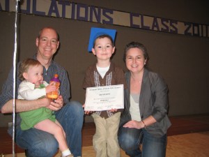 Everyone at St. Andrews has been wonderful, as have been the other parents and kids. I don’t know that there was ever a day where he didn’t want to go to school. They did such a great job of giving him a combination of social skills and gradually increasing the amount of structural learning. I remember writing a post on my old blog about the night we were out a restaurant and Ian wrote his name for us for the first time. I wish I could say he learned it from us, but he didn’t. There are so many more examples of things like that where he’s amazed us with things he’s learned there. Though, if I had to pick someone I’m the most grateful for during his few years there, it is Teacher Violetta, his pre-k teacher of this past year. She told us the first week of class that she took her job of preparing these kids to be successful in kindergarten very seriously and she meant it. His skills flourished this past year and we have every confidence that he’s going to do really well in kindergarten, and it’s all thanks to Violetta and his assistant teachers like Teacher Audra and Teacher Jessica who treat him with love yet have high expectations. Teacher Violetta left the school year a bit early and quietly – sharing with the kids that she was going on an extended vacation and telling us that she was fine and would be back. We later learned that she has breast cancer and as of a couple of weeks ago, it was still uncertain whether she would return in the fall for the next pre-k class. My heart goes out to this woman who gave my son such a wonderful gift.