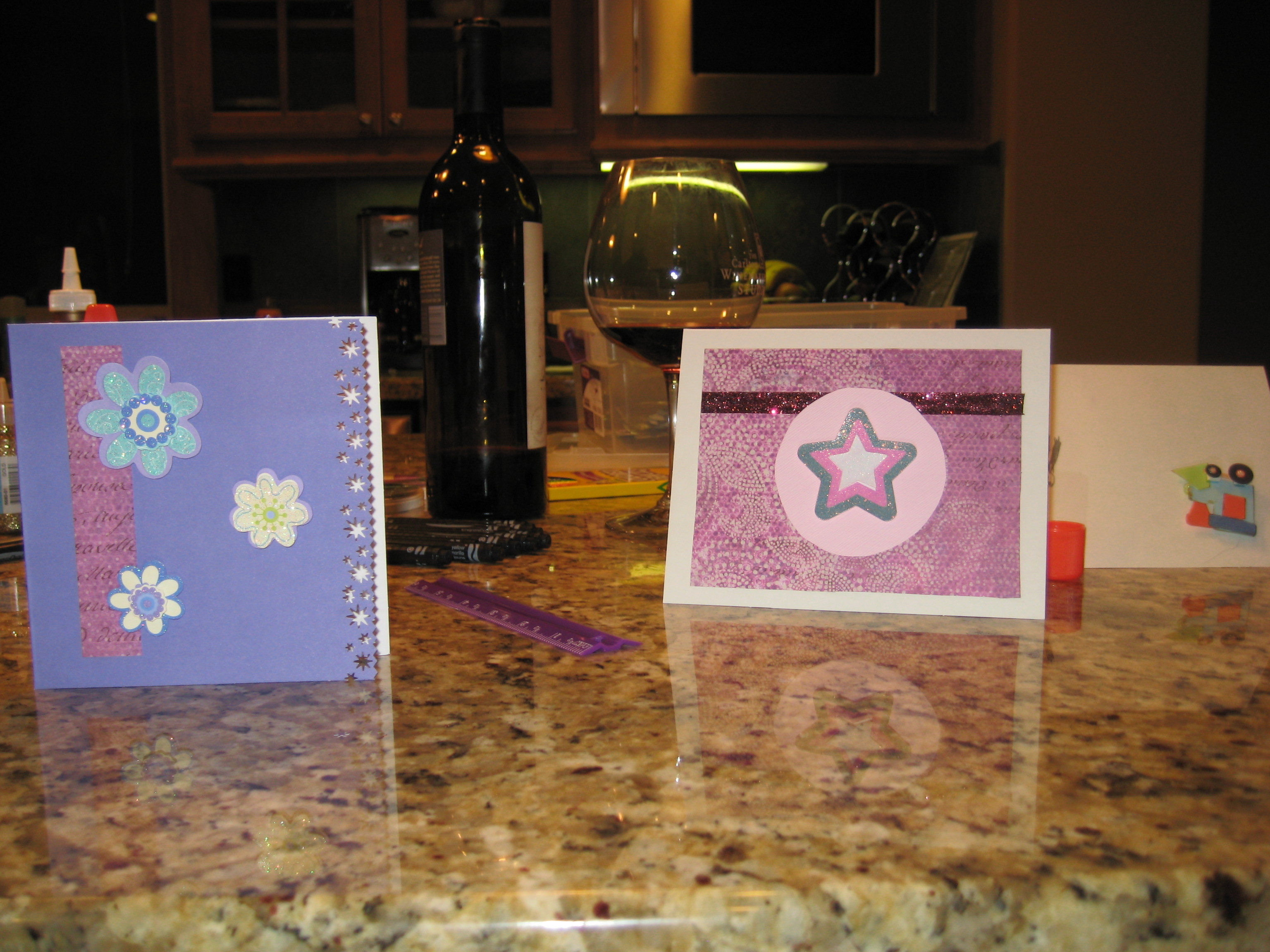I love this – I recently found myself at Michael’s for some craft ideas for Perry’s birthday party. OMG, I easily spent an hour and a half in that place. I ended up buying each girl a pair of pink flip flops and some colored jewels that they could glue to the straps. It was a hit. However, getting to that decision was not easy – so many crafty things to choose from! It was dizzying…and I think I’m as crafty as you! Love your cards!